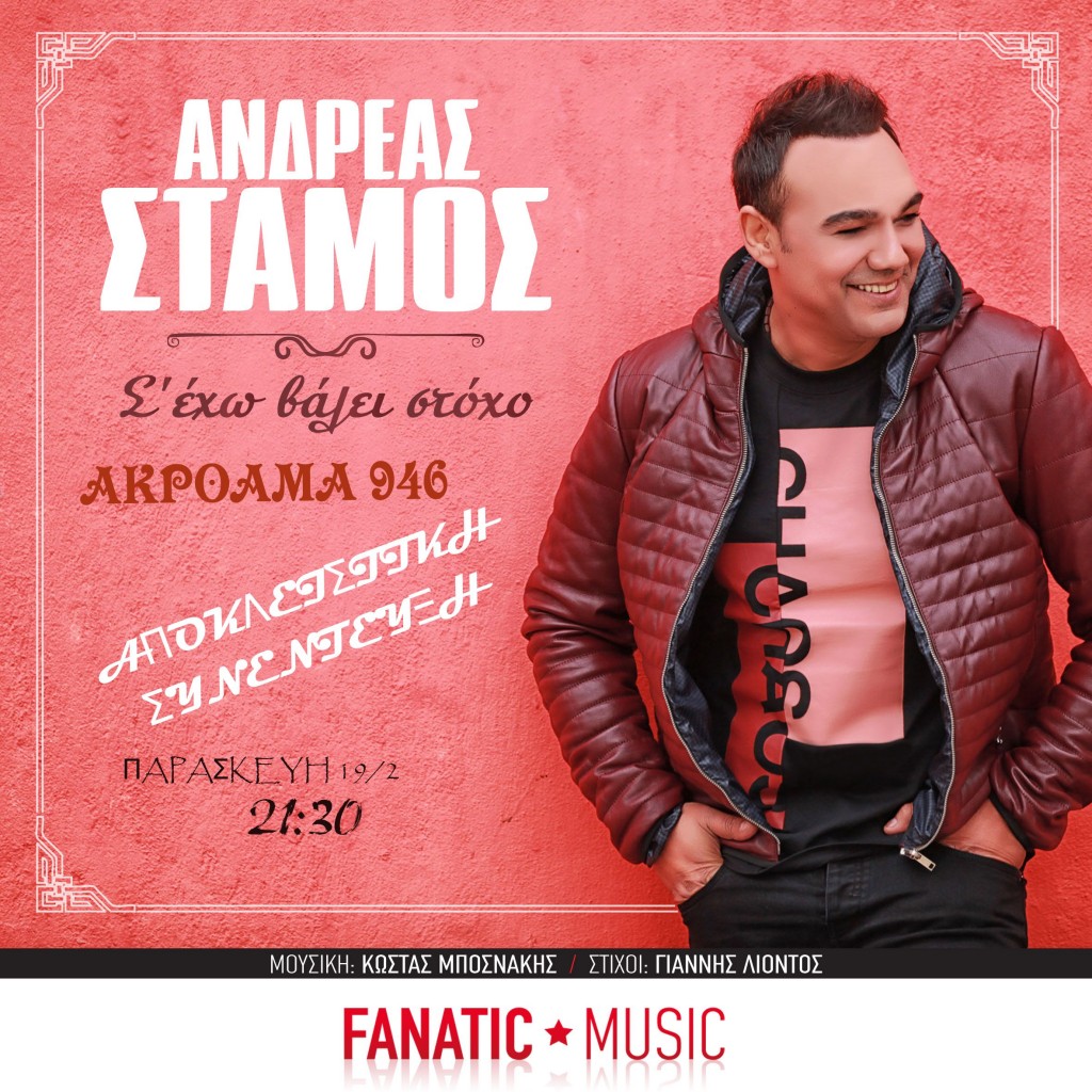 Ο Ανδρέας Στάμος στο Ακρόαμα 946 σε μια αποκλειστική συνέντευξη!Παρασκευη 19/2 στις 21:30.Μαθαίνουμε τα νέα του και ακούμε το νέο του τραγούδι!
