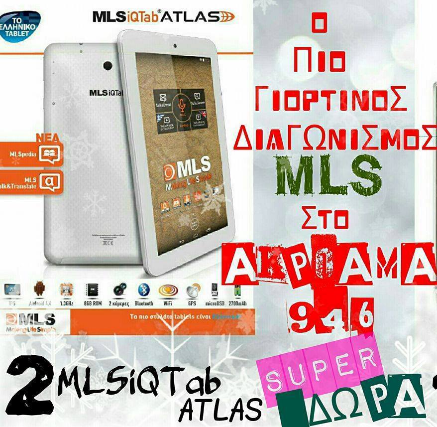 2 τυχεροί θα κερδίσουν από 1 MLS iQTab ATLAS με 7” οθόνη και δώρο το MLS Destinator Talk&Drive